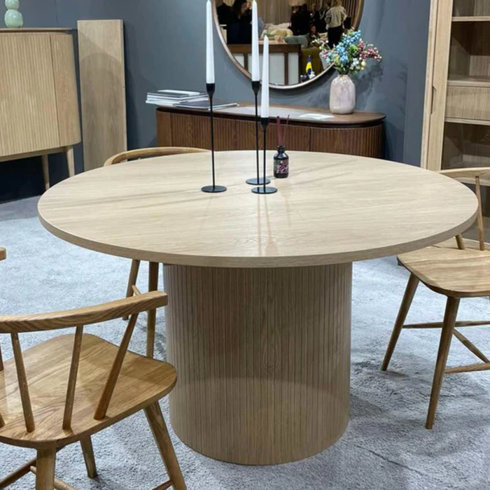 Our inviting round extending table is made from oak and comes in a 1.3m size, extending to 1.8m. Using little effort this table extends with the help of a leather strap to pull insert out, as well as close away.