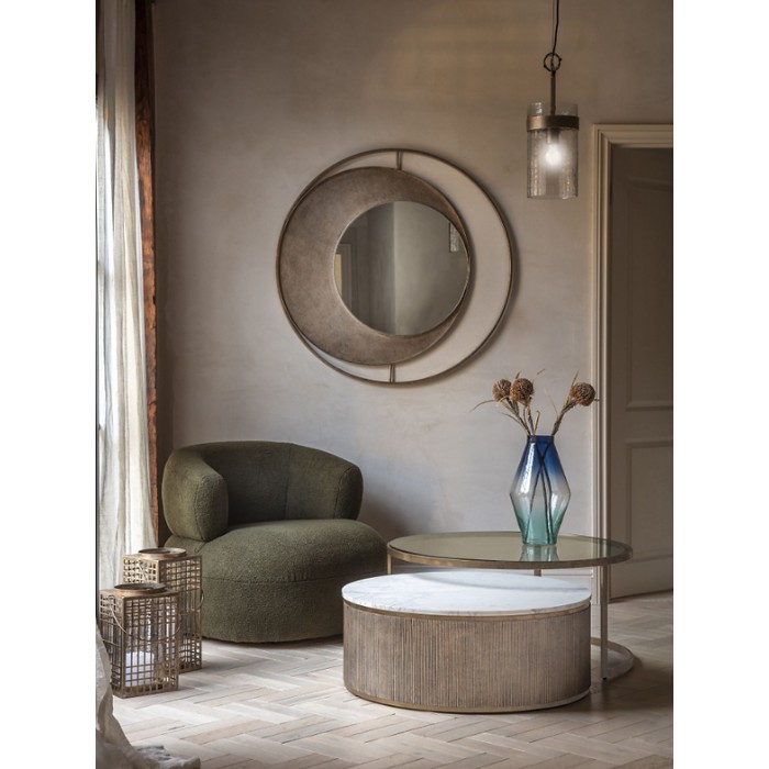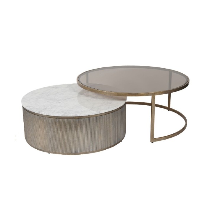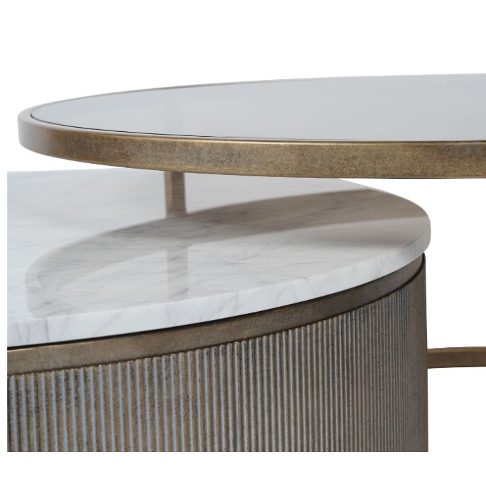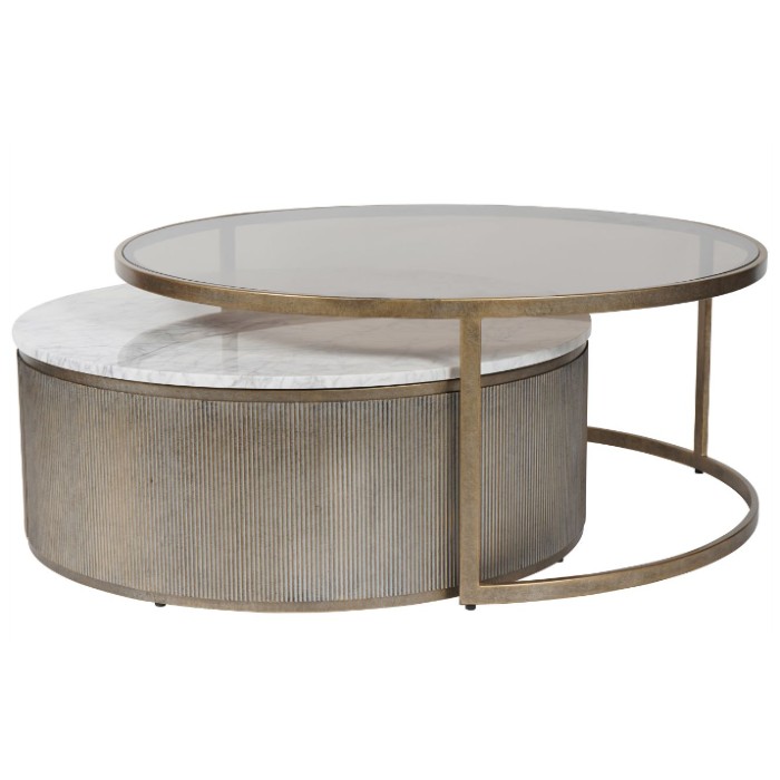 Belvedere Aged Gold Set of 2 Nesting Coffee Tables with Marble and Tinted Glass
