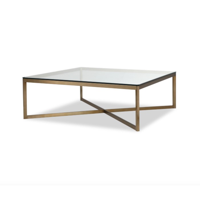 A stunning brushed brassed coffee table with glass top. This table will elegance and character to your living room.