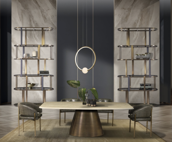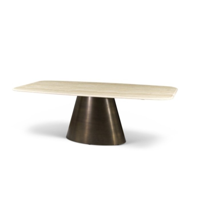 Santa Monica tables are perfect for decorating any contemporary or modern environment. The conical base finished in Oxybronze is stunning in its simplicity and elegance. The marble top has a fine edge bevel carried out on the edge of the upper polished face entirely by hand.